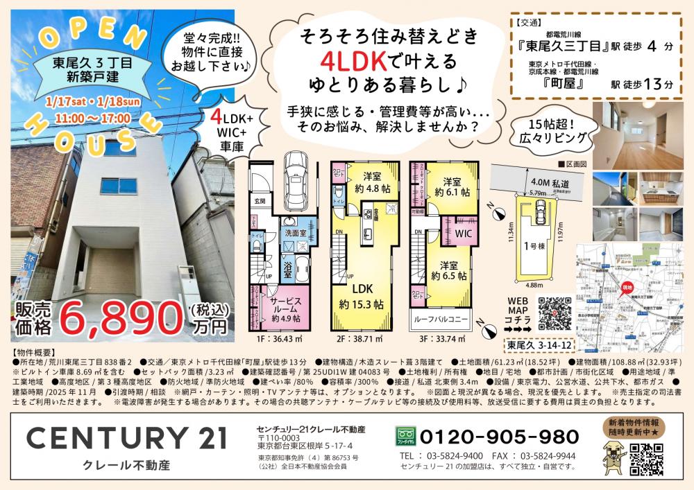 東尾久3丁目新築戸建て 6890万円4LDK