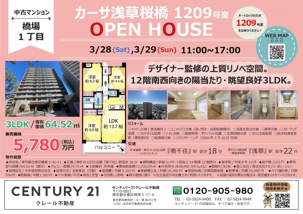 カーサ浅草桜橋 陽当り・眺望良好!現地内覧会開催!|現地販売会情報