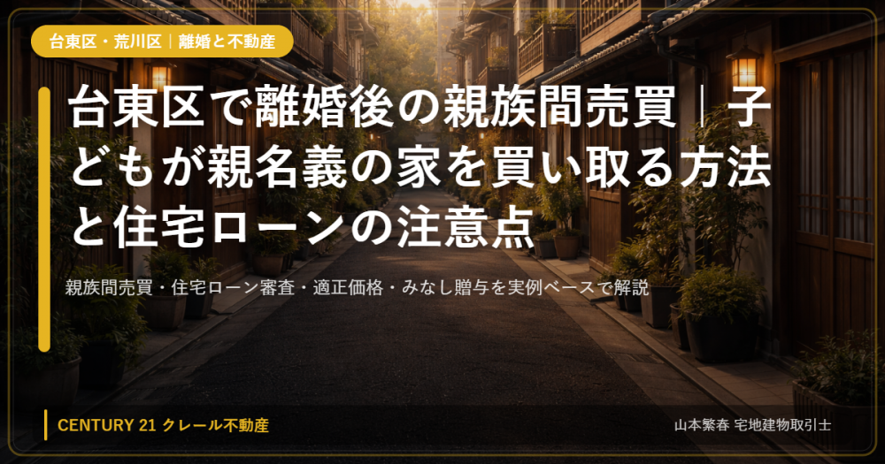 台東区・荒川区|離婚で住宅ローン残債の家(不動産)を妻が買い取る手順と名義変更(登記)2026-04-17