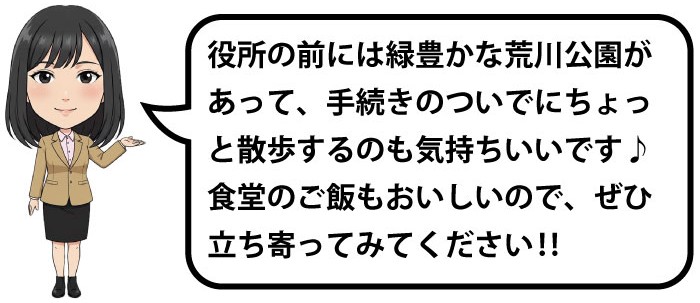 ・都電荒川線「荒川二丁目」駅または「荒川区役所前」駅:徒歩4分 ・JR各線「三河島」駅:徒歩約10分(都バス・亀戸駅前行き(里22)をご利用ください) ・東京メトロ日比谷線、JR常磐線、つくばエクスプレス「南千住」駅:徒歩約10分(コミュニティバス「さくら」をご利用ください) ・東京メトロ千代田線、京成本線、都電荒川線「町屋」駅:徒歩約12分(都電荒川線、またはコミュニティバス「さくら」をご利用ください) ・東京メトロ日比谷線「三ノ輪」駅:徒歩約15分(都電荒川線、または都バス・浅草寿町行き(草63)か浅草雷門南行き(草64)をご利用ください) ・JR各線「日暮里」駅:徒歩約25分(都バス・亀戸駅前行き(里22)をご利用ください) ・JR各線「西日暮里」駅:徒歩約25分(都バス・浅草寿町行き(草63)をご利用ください) ●都バスをご利用の場合 ・亀戸駅前行き(里22)乗車、「荒川区役所前」下車、徒歩約2分 ・浅草寿町行き(草63)乗車、「荒川区役所前」下車、徒歩約2分 ・浅草雷門南行き(草64)乗車、「荒川区役所前」下車、徒歩約2分 ●コミュニティバス「さくら」をご利用の場合 ・南千01系統(左回り循環)乗車、「荒川区役所」下車、徒歩約2分 ・南千02系統(右回り循環)乗車、「荒川区役所」下車、徒歩約2分 |